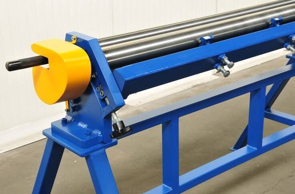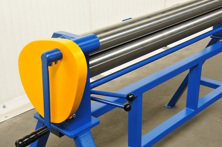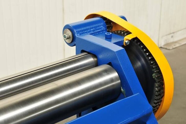 Twee ervan bevinden zich in het voorste deel van de machine (bovenste en onderste) en hebben de functie om het opgerolde plaatwerk te trekken.