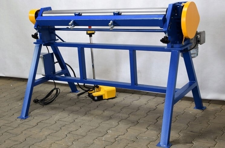 RB-1300 / 1.5 buigmachine met elektrische aandrijving is een machine die wordt gebruikt voor het oprollen, buigen van cilindrische buizen, conische buizen met lage conus, goten en alle soorten platen tot 1,50 mm dik en trekvast sterkte Rm tot 400 MPa.