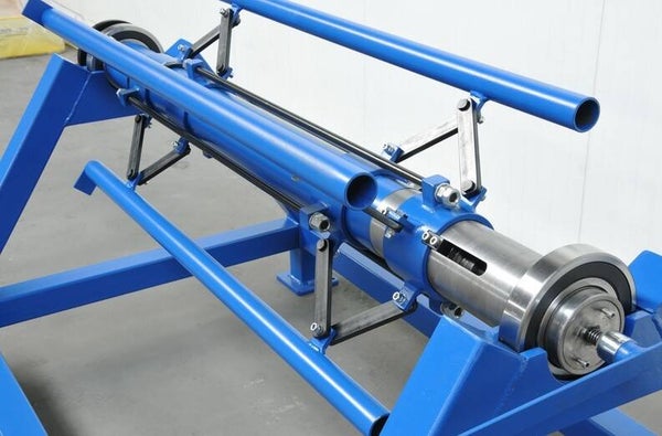 De stijve en stabiele structuur van de basis van de afwikkelaar zorgt voor duurzaamheid, en het gebruik van grote wentellagers aan de uiteinden van de ondersteunende buis garandeert een vrije rotatie van de plaatrol met minimale kracht - met de hand.