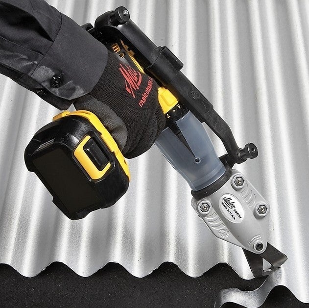 Een professioneel dakdekkersgereedschap die nodig is voor het snel en probleemloos snijden in lengte- en dwarsrichting van plaatstaal - golfplaten, middelzware trapeziumplaten en metalen dakpannen.