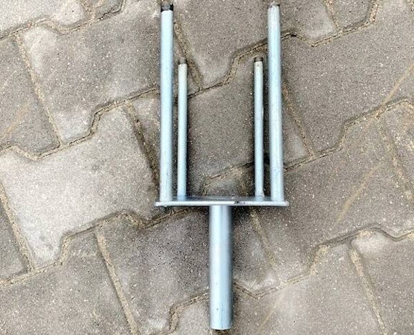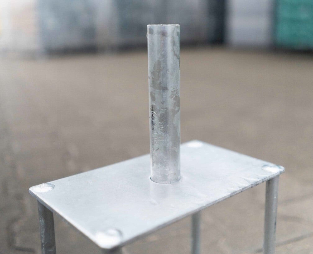 De constructie bestaat uit een stalen plaat waaraan aan één zijde een stalen buis is gelast en in de steunpoot is geplaatst. Aan de tegenoverliggende zijde van de plaat zijn vier bevestigingsstaven gelast op de liggers op de kop. Hierdoor bewegen of roteren de liggers niet.